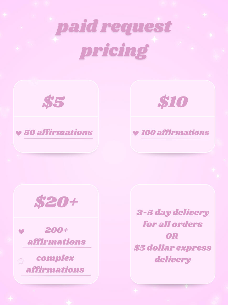 not really — i don’t like being left suggestions. however, if i come across a topic i haven’t explored yet that’s unique and could help a lot of people, i’ll take note of it for the future. before suggesting anything, please check all of my subliminals and playlists — chances are, i’ve already made what you're looking for.how often do you upload?